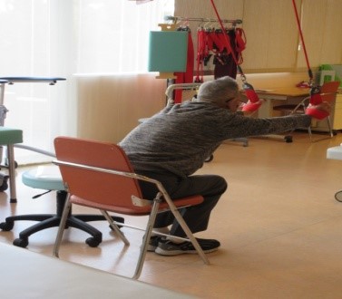 レッドコードは、天井から吊り下げられたロープを使って体幹や手足の運動をするものです。