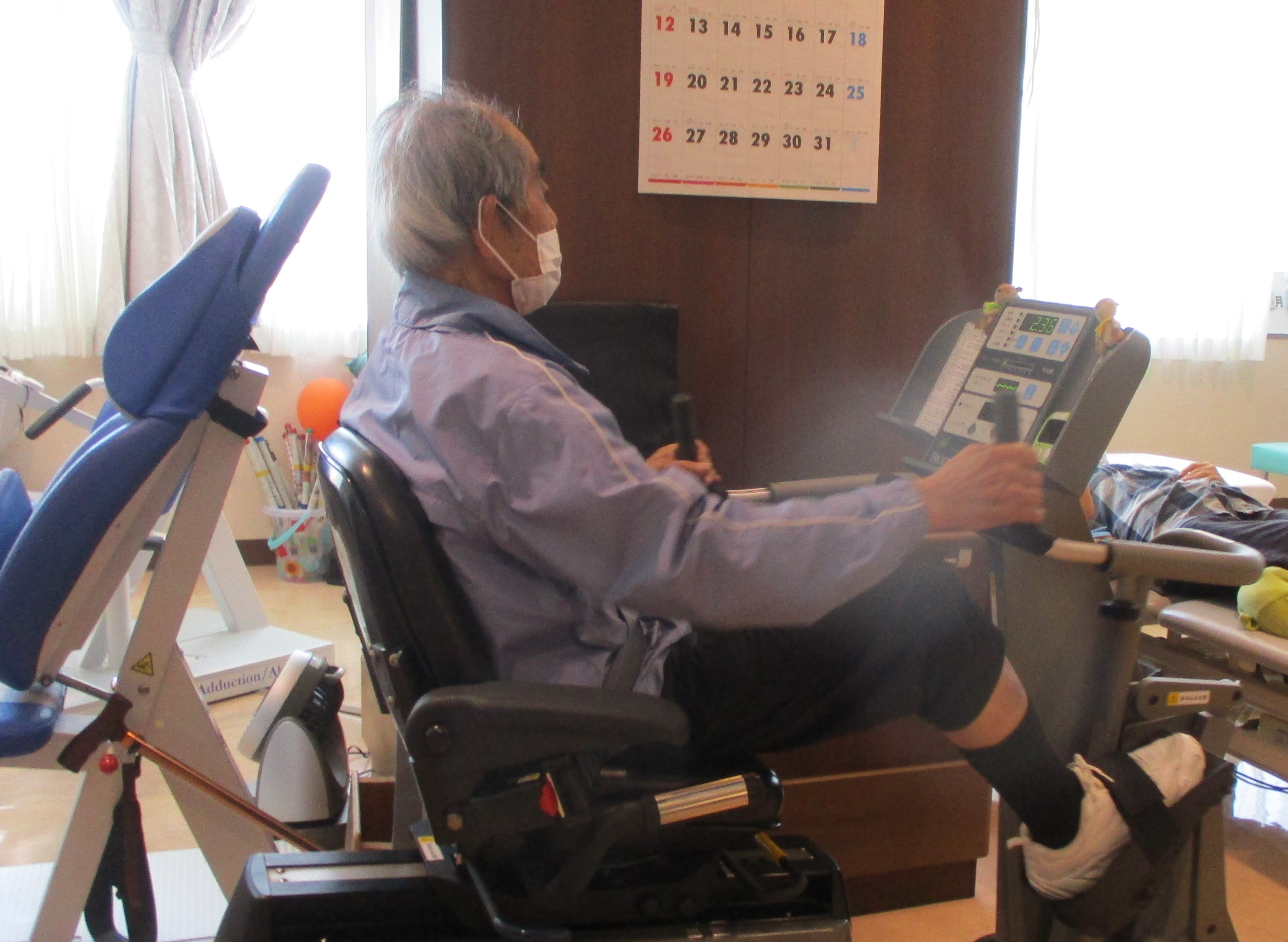 バイオステップは椅子に腰かけて行うので安全に全身運動ができます。心肺機能の向上や筋力向上はもちろん、ハンドルとペダルを交互に動かすことで歩容の改善や歩行の安定性向上も期待できます。