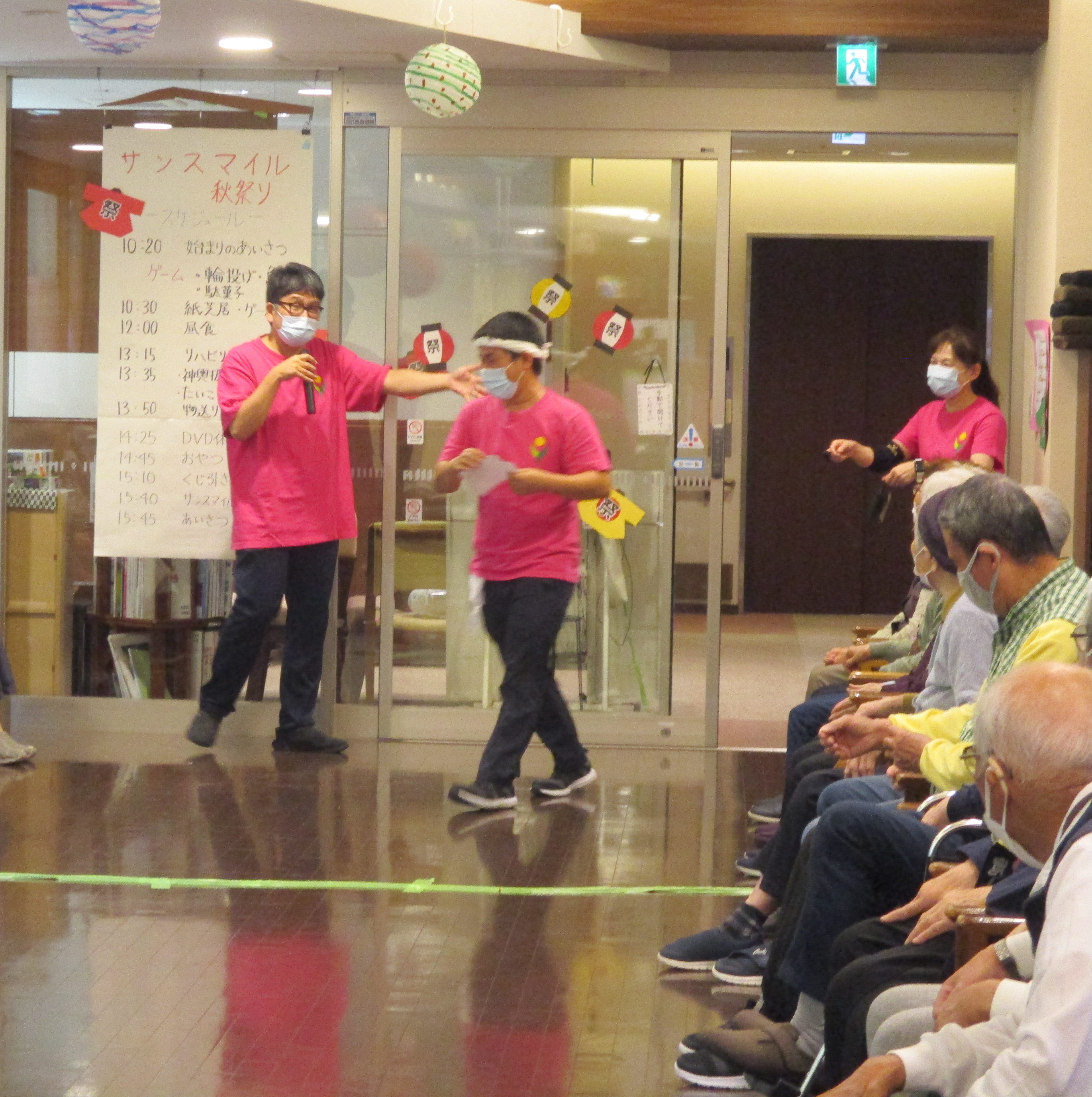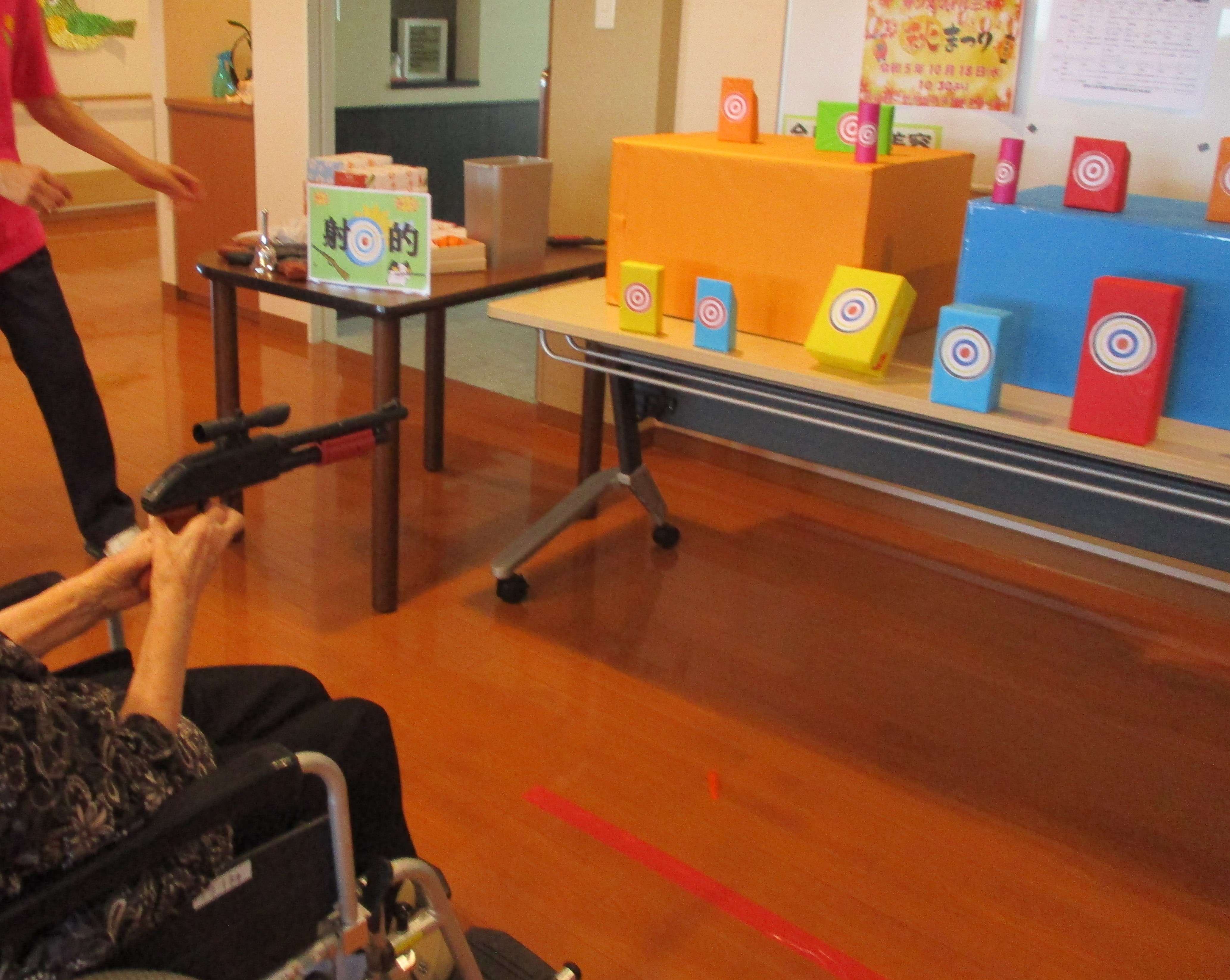 去る10月18日、ユニット秋祭りを開催しました。たくさんのゲームやお食事で楽しんでいただきました。射的では、集中して的に命中できました。