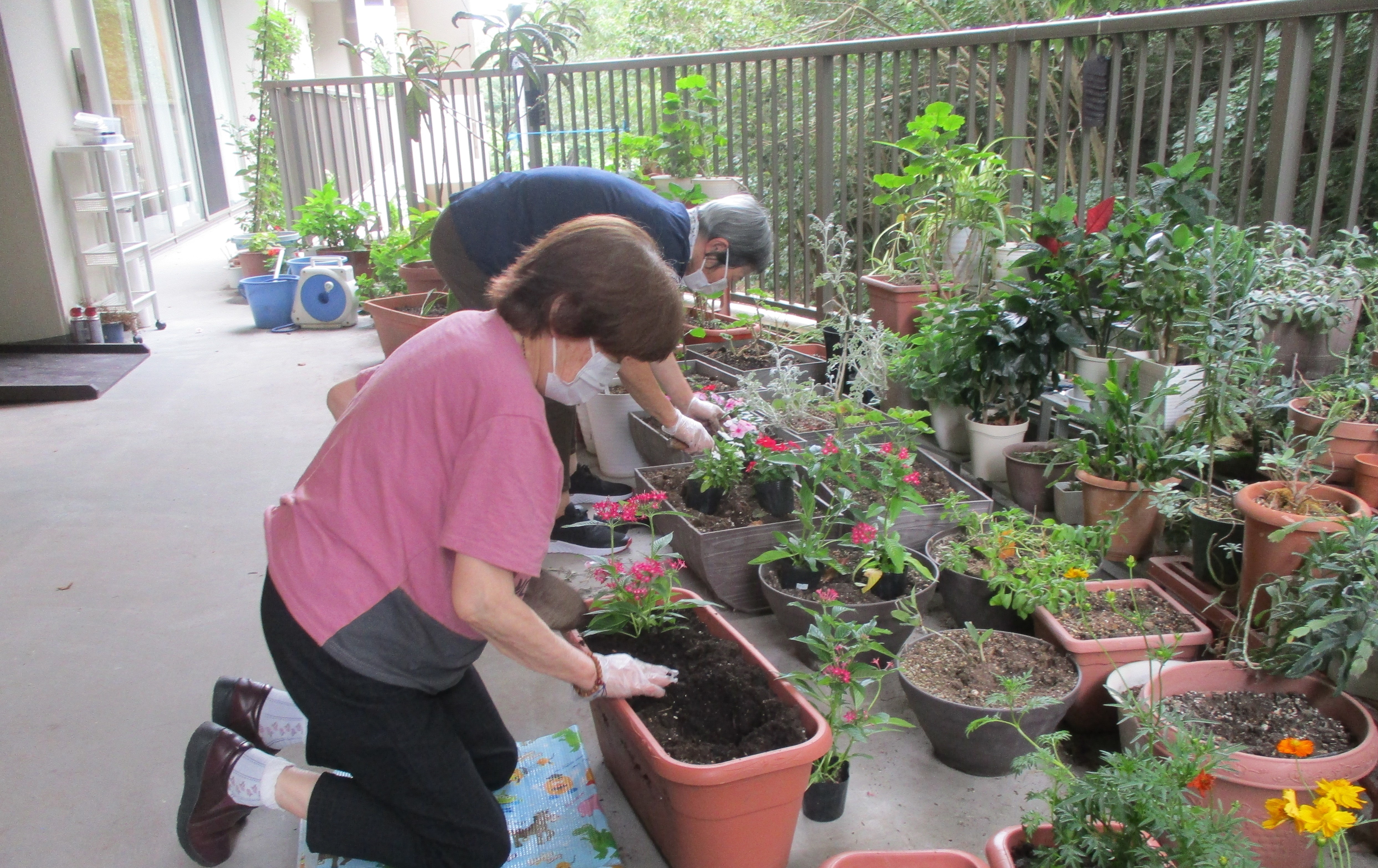 2階ベランダのプランターに花を植えました。きれいな花を観賞するのが楽しみです。