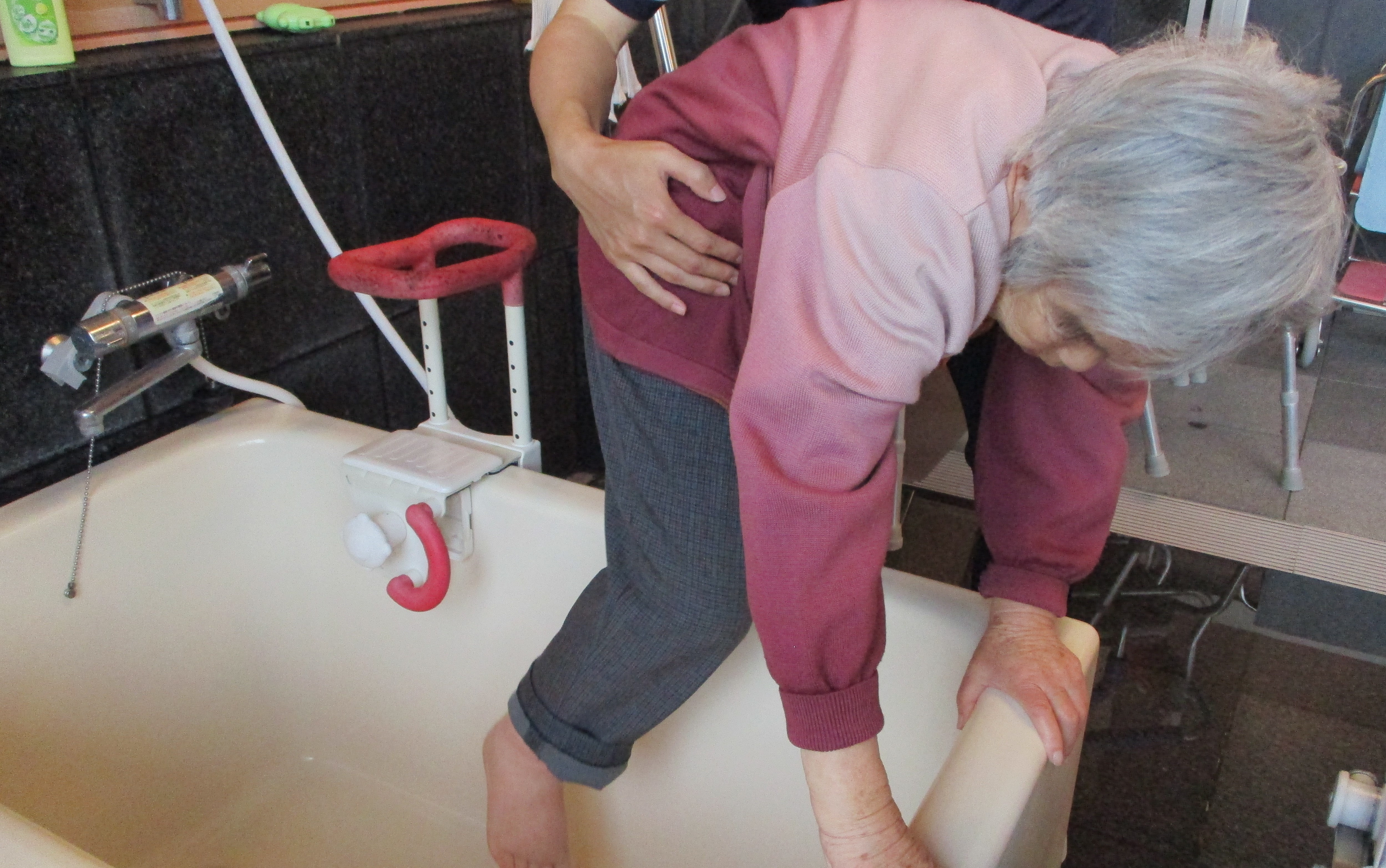 在宅復帰に向けて、浴槽へ入る動作練習を行っています。