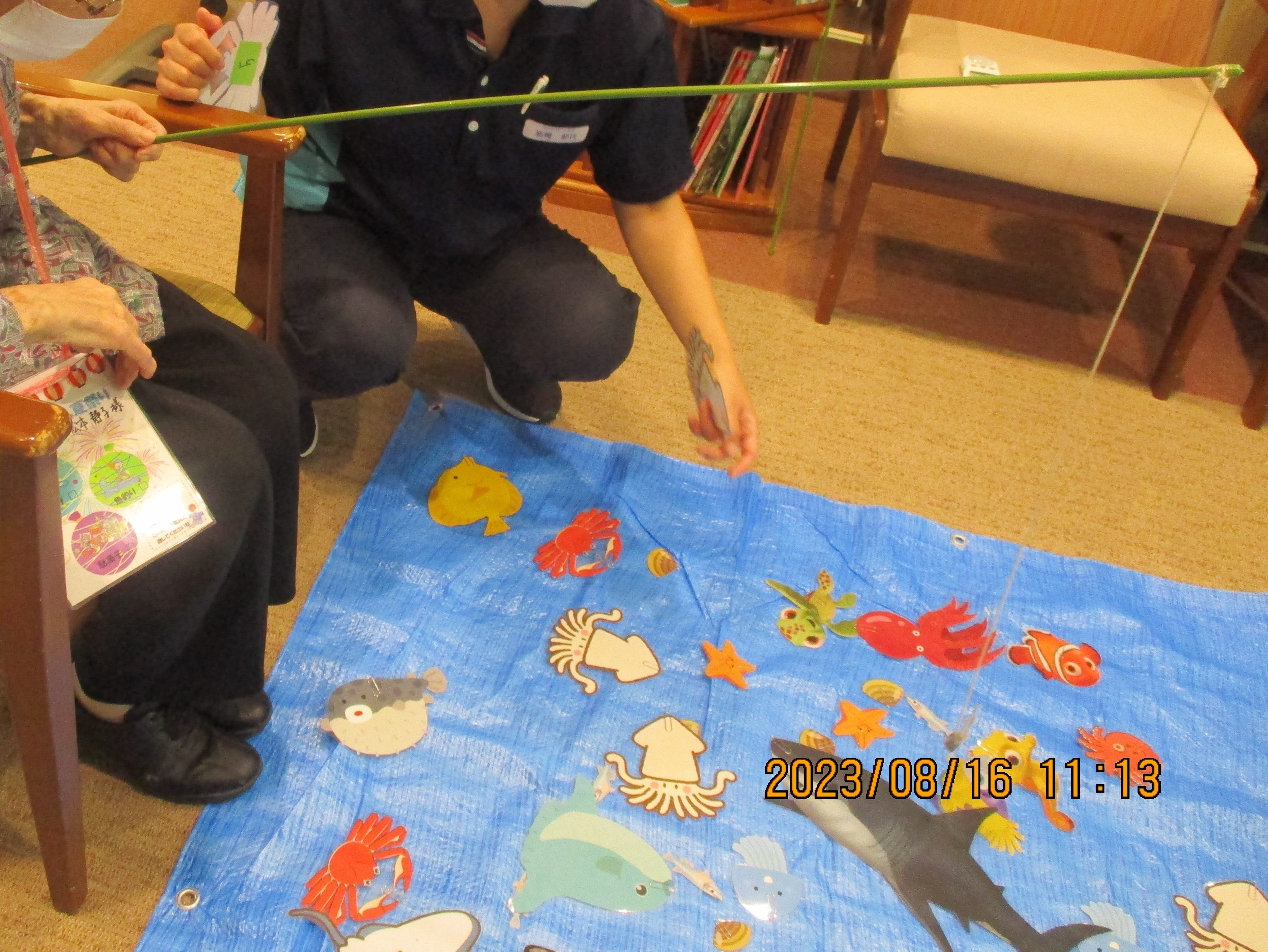 魚釣りゲームを行いました。狙いを定めて一生懸命、釣りあげました。