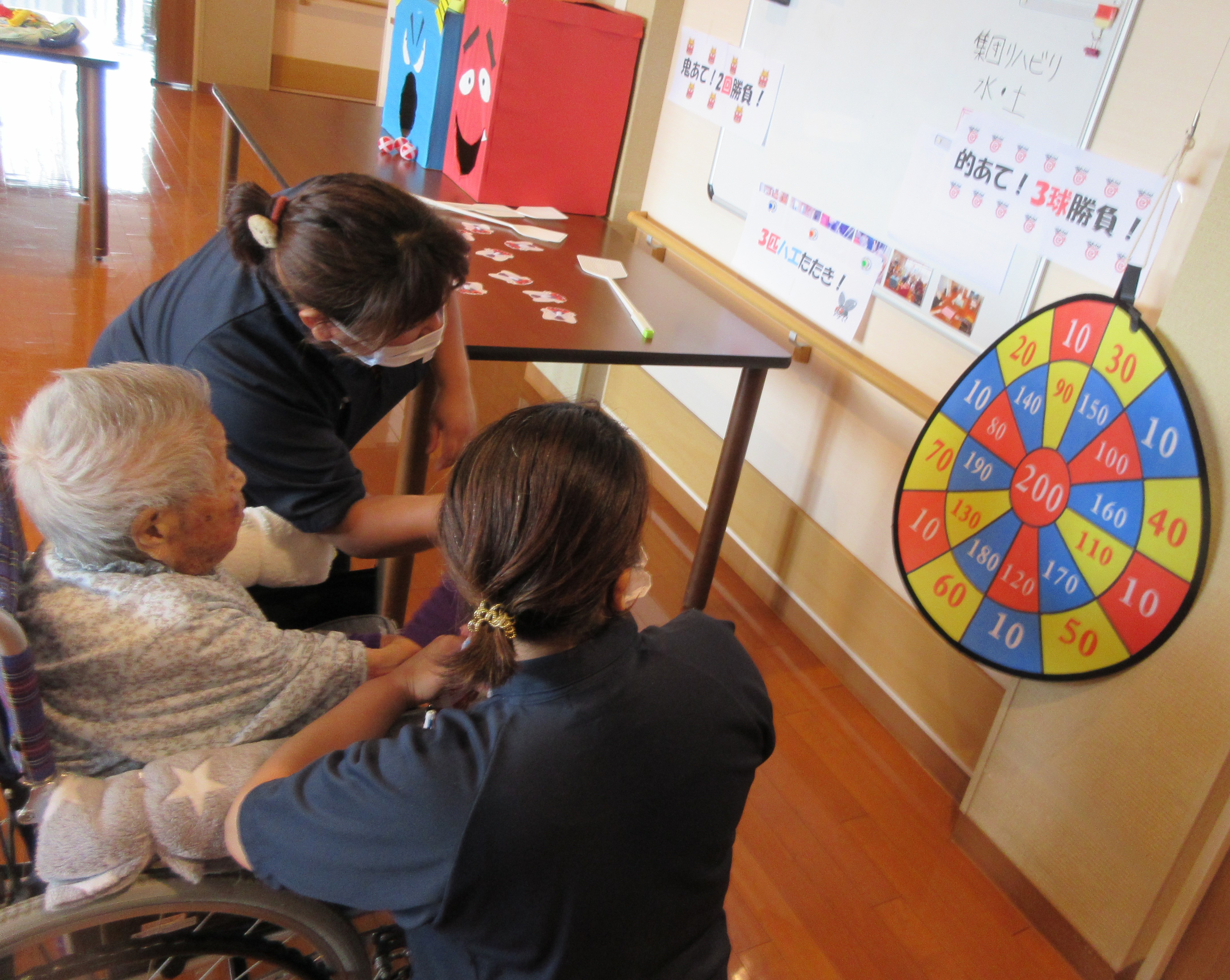 的当てゲームを行いました。皆さま、真ん中めがけて投げ込みました。