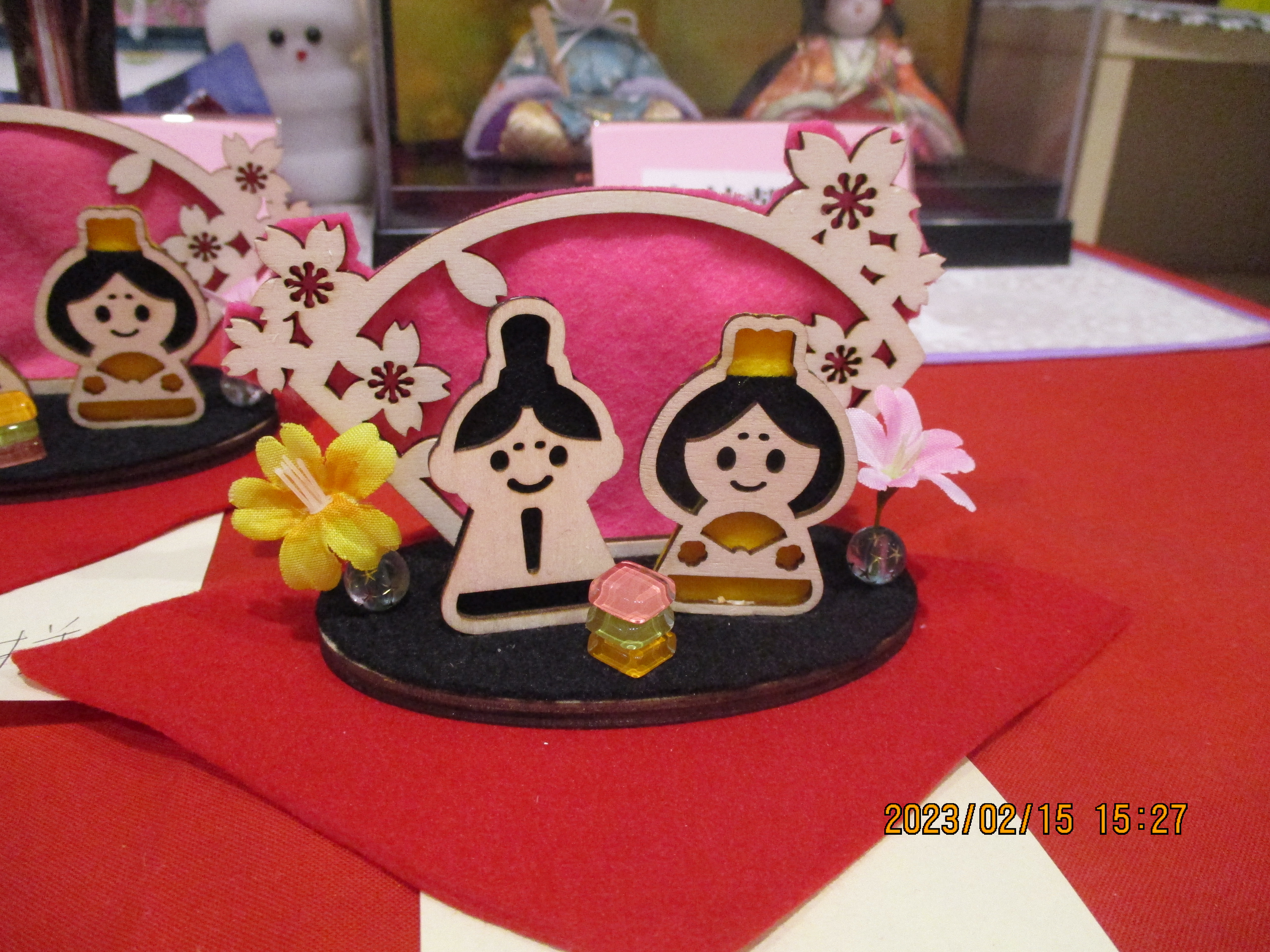 手芸クラブでお雛様の飾りを作りました。菱餅をガラスで作るなど工夫しながら作品を完成させました。