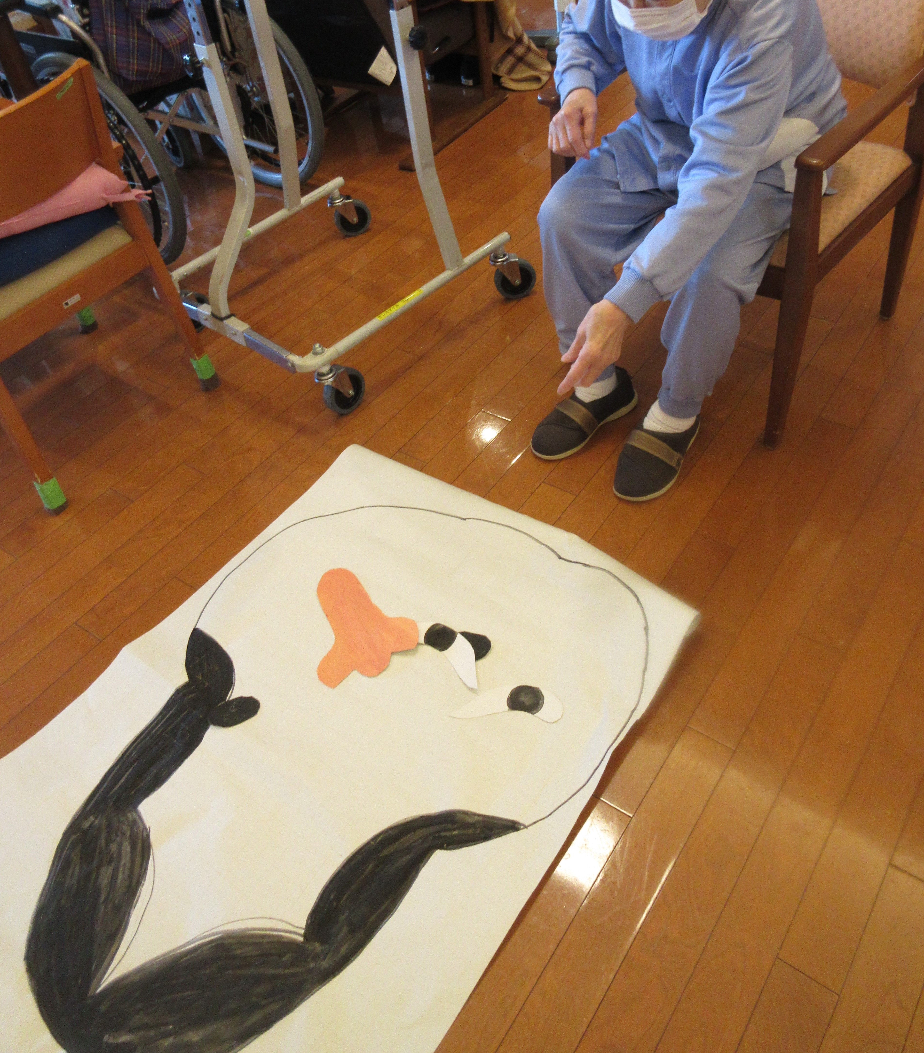 福笑いなどの正月遊びを行い、お正月気分を味わっていただきました。