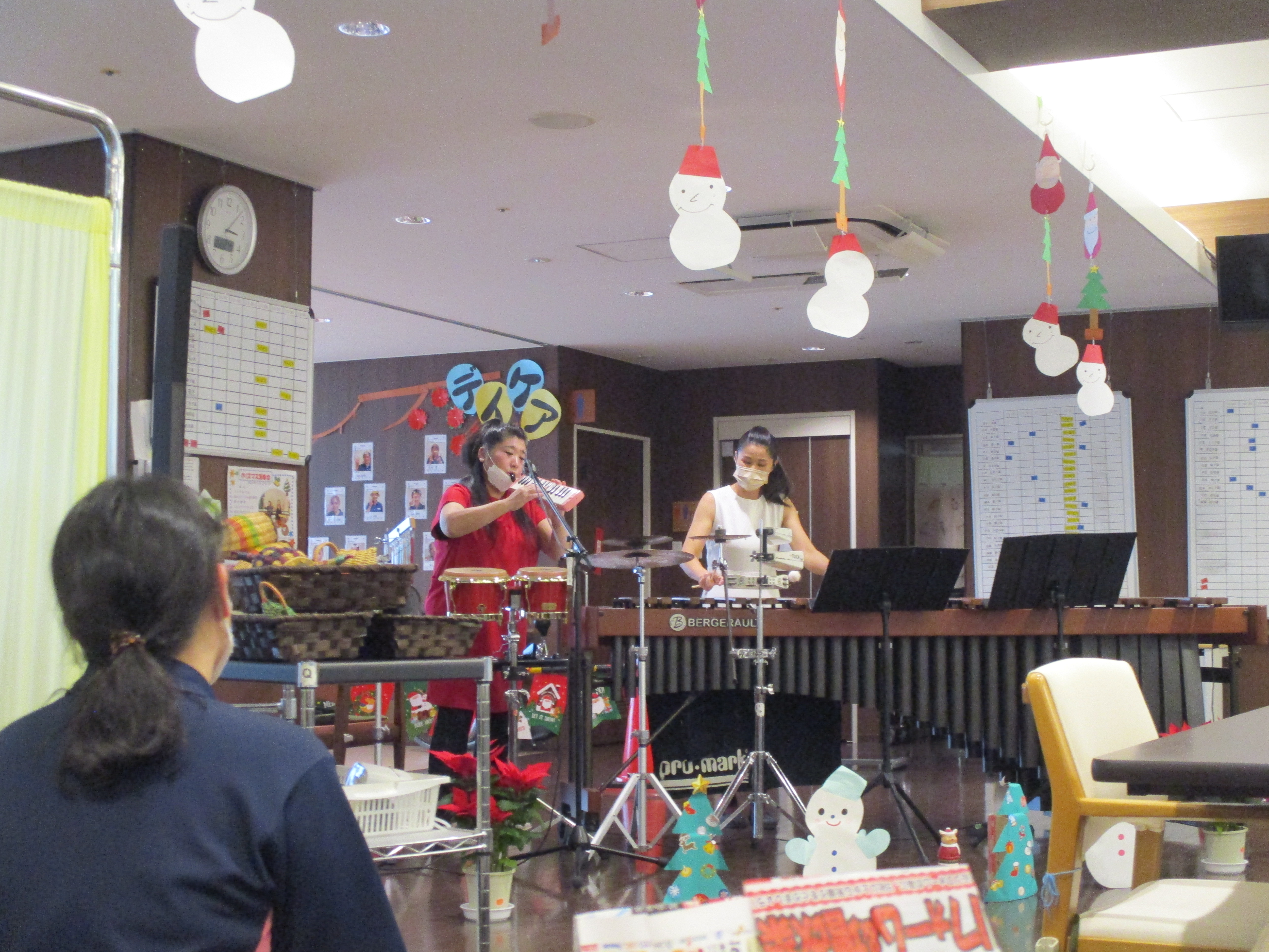 マリンバの演奏会がありました。クリスマスソングから美空ひばりメドレーなど色々な曲を演奏していただきました。迫力がすごくて、利用者さまもとても喜んでおられました。